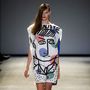 That shape came again in longer coats and cropped jackets printed in a rave-y tech-camo of fuschia and lime green, which faded to pastel tones and eventually to neutral. There were flashes of gingham too, on shirtdresses that seemed to borrow from the American Midwest, updated with sport details such as bandeau sleeves and wrap-over yokes.