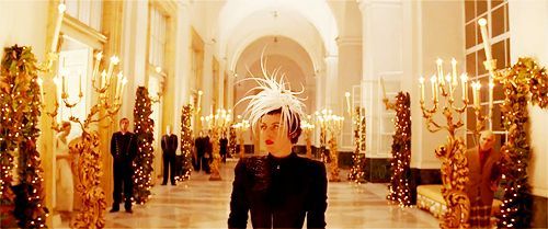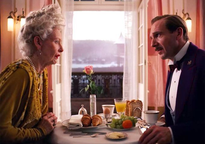Ralph Fiennes plays M. Gustave, a vain but lovable hotel concierge with a penchant for older ladies like the rich Madame D. (Tilda Swinton). His uniform – costumes were designed by Milena Canonero once again – is always impeccably presented, regal and deep purple. Her outfits meanwhile are suitably grand, all pearls and velvet: you can practically smell the old lady scent of expensive perfume and musty fabric wafting from them.