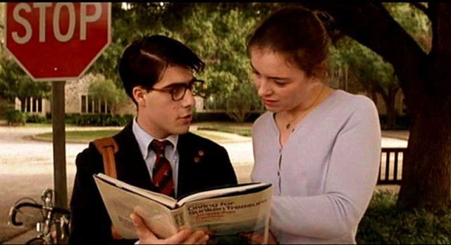 Jason Schwartzman plays Max Fischer, a teenage playwright in love with both his school, Rushmore, and a young pretty primary teacher, Rosemary Cross, played by Olivia Williams. Rushmore is a private school so Max is attired in a blazer with a tie. He often accessorises with a hat, particularly a beret, and is very well-groomed, which can be attributed to the fact that his father is a barber (although Max fibs that he is a doctor). Rosemary is grieving for her dead husband and her wardrobe is sweet and comfortable. It's all about scrunchies and cardigans.