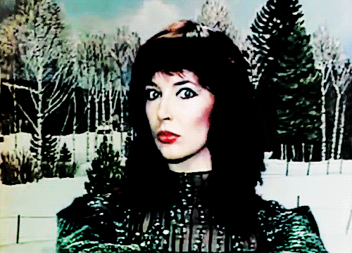 Sometimes ethereal crossed into seriously weird in Kate's notoriously creative videos, such as this one for Sat in Your Lap. Still, she makes the ballerina dress work, even when flanked by creepy harlequins.